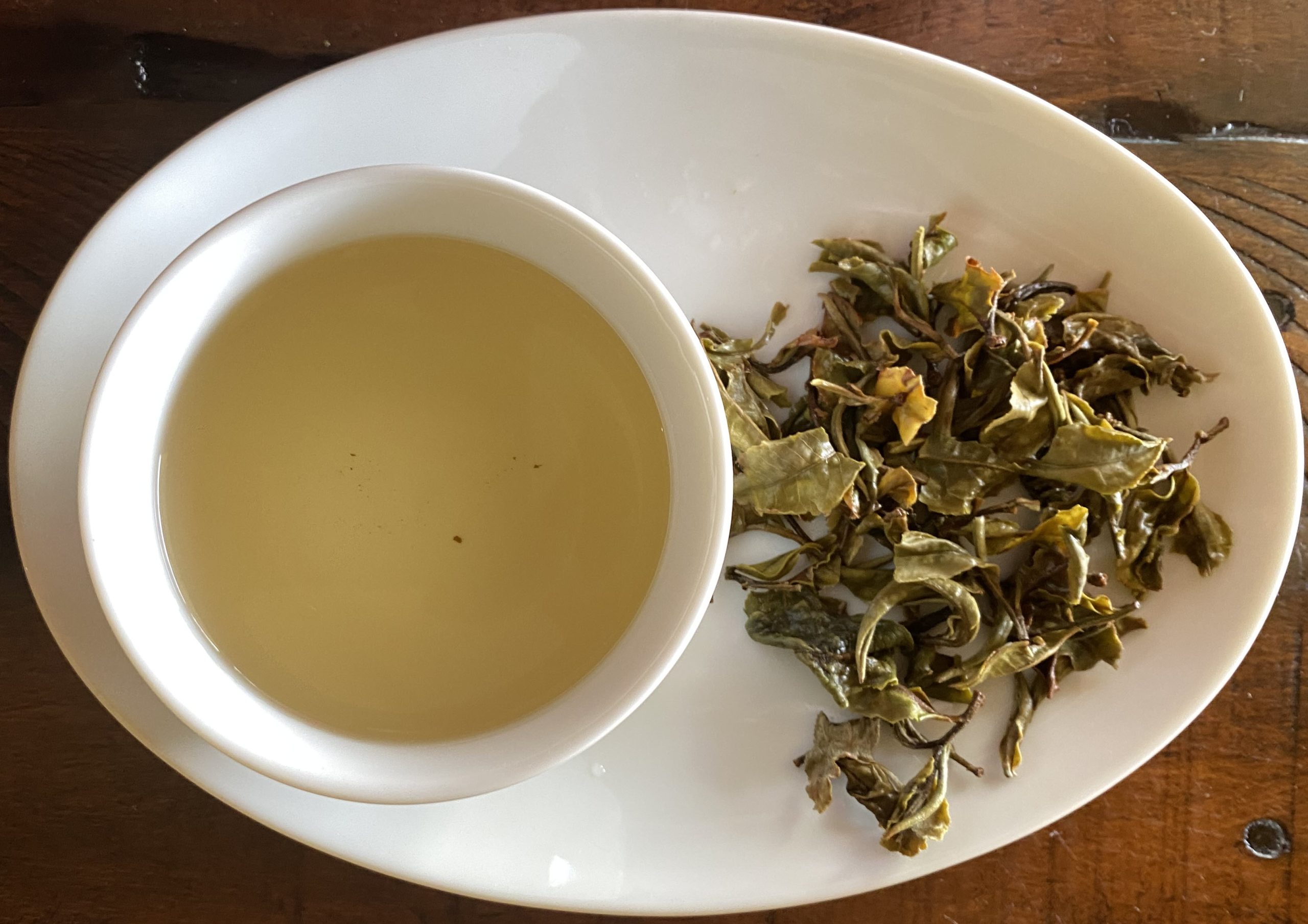 Long silvery tips nestled among classic white peony green and tan-colored leaves. Pale gold brew with a delicate, slight toasty flavor.