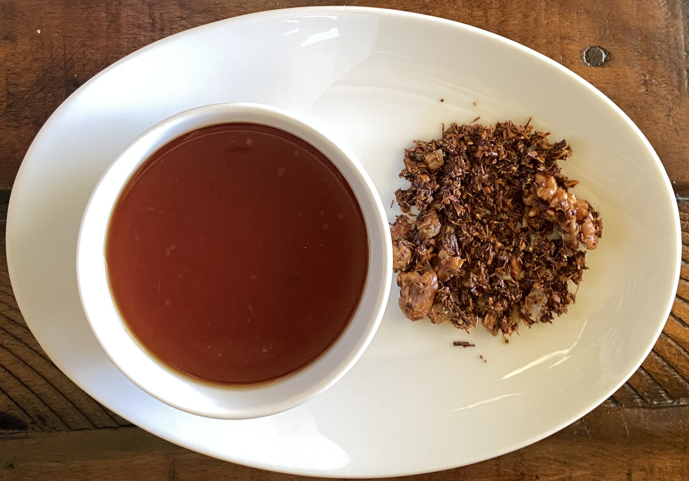 What a delightful rooibos blend. Great for the cooler weather. This Gingersnap Cookie is a guiltless treat. Hot, it warms you with the nuttiness and iced, the candied fruits shine.