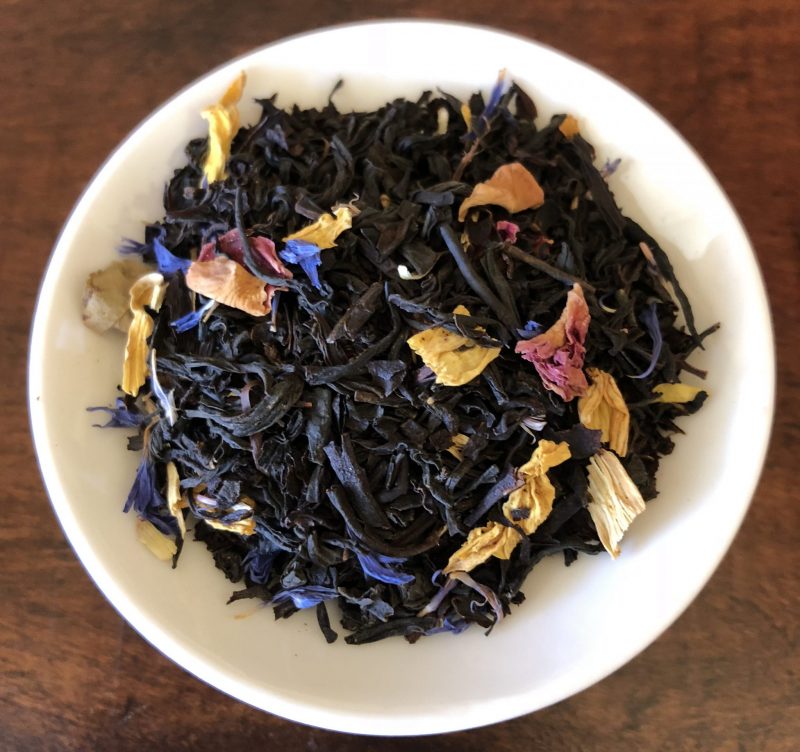 Picture yourself sitting on a tropical beach watching the beautiful sunset while sipping a glass of black tea flavored with exotic fruits of mango, passion fruit and papaya. The blazing colors of the added blossoms remind you of the colorful tropical sunset. While you might not actually be there, a cuppa of this smooth black tea will magically take your imagination there. You may even hear the waves rushing in and out. Imagine digging your toes into the soft sand and sipping this tea, hot or cold. It’s your dream, you pick. This tea showcases well either way. This is one tea you’ll definitely want to add to your collection, and, enjoy the escape.